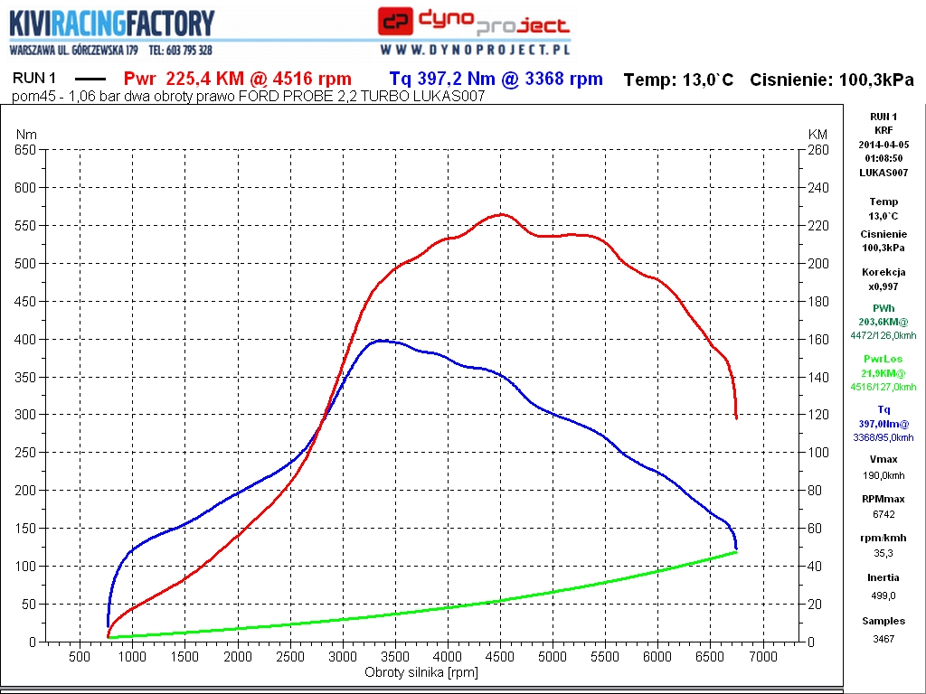 Co do stanu obecnego - wykres, jako podsumowanie walki o moc przy seryjnej turbinie - myśle, że nawet bez bawienia się w sztukę i półśrodki z ECU Masterem wyszły całkiem dobre wartości. Parę drobiazgów zostało poprawionych, wszystko co tylko dało się zrobića zostało sprawdzone na hamowni i obecna konfiguracja daje najlepsze wyniki.
