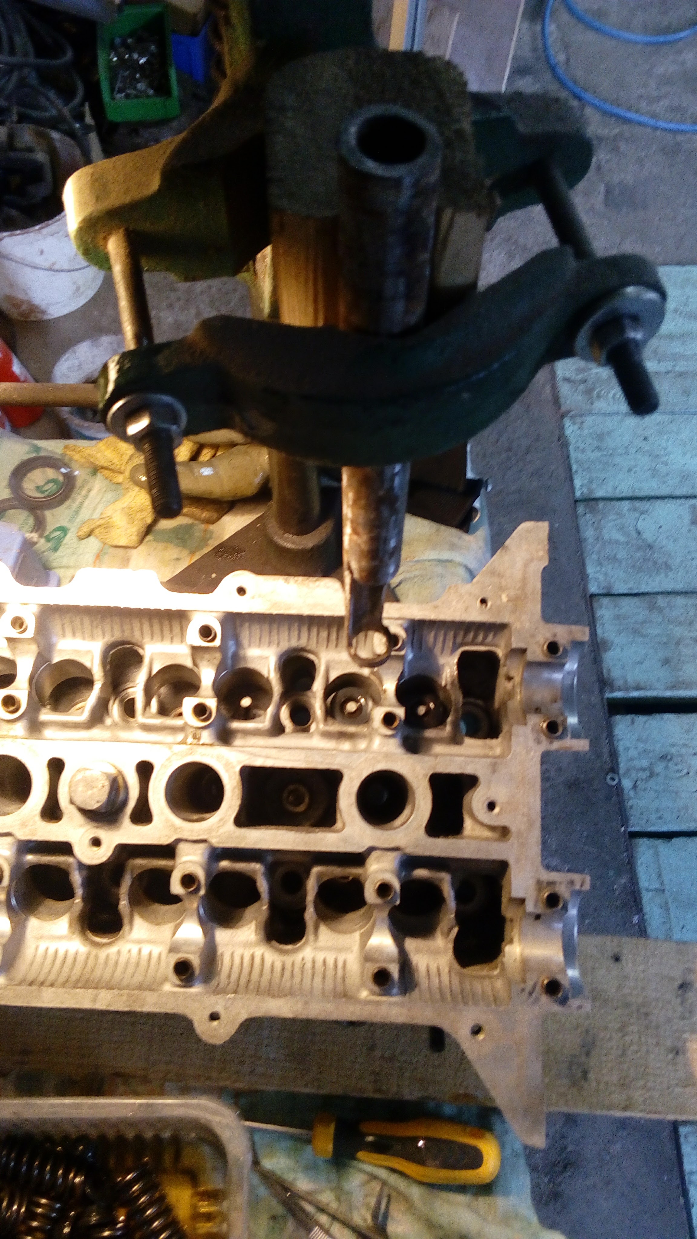 Głowica po planowaniu, dotarciu zaworów i sprawdzeniu szczelności. Tego ostatniego się najbardziej bałem po moich zabawach, ale jest wszystko ok. Teraz już jest ppskładana. Czeka tylko na dół silnika i miejsce gdzie zostanie całość zamontowana.