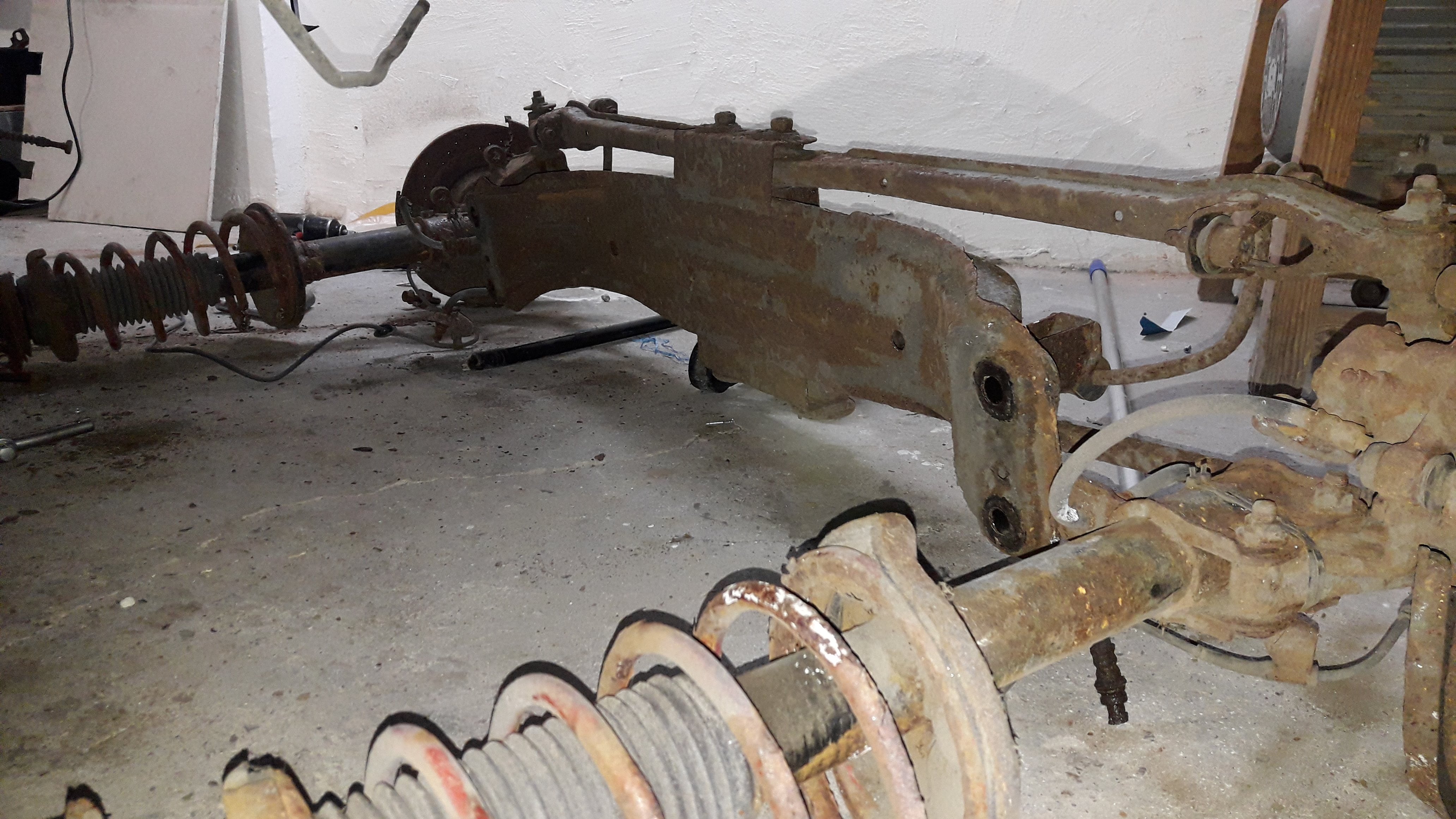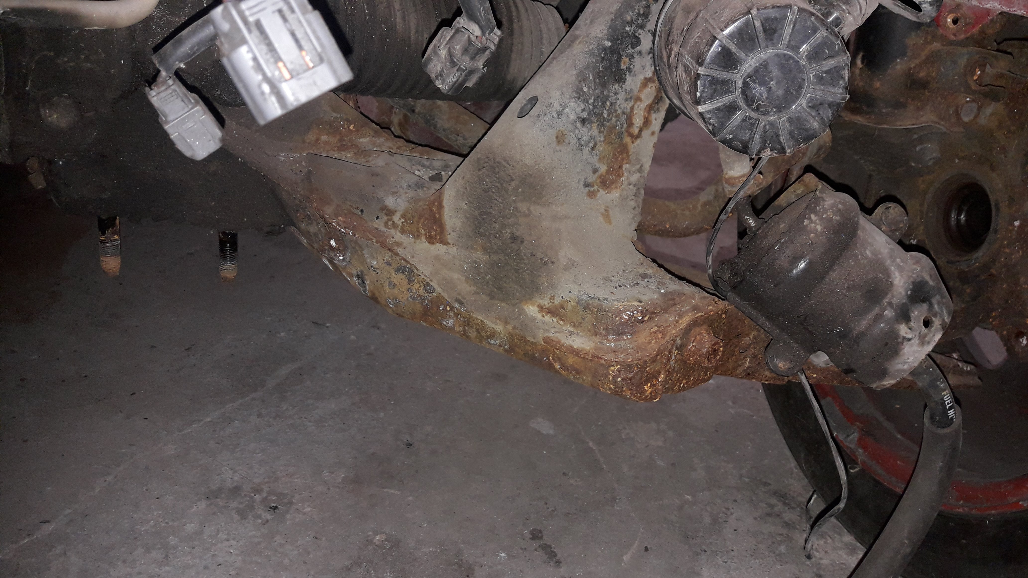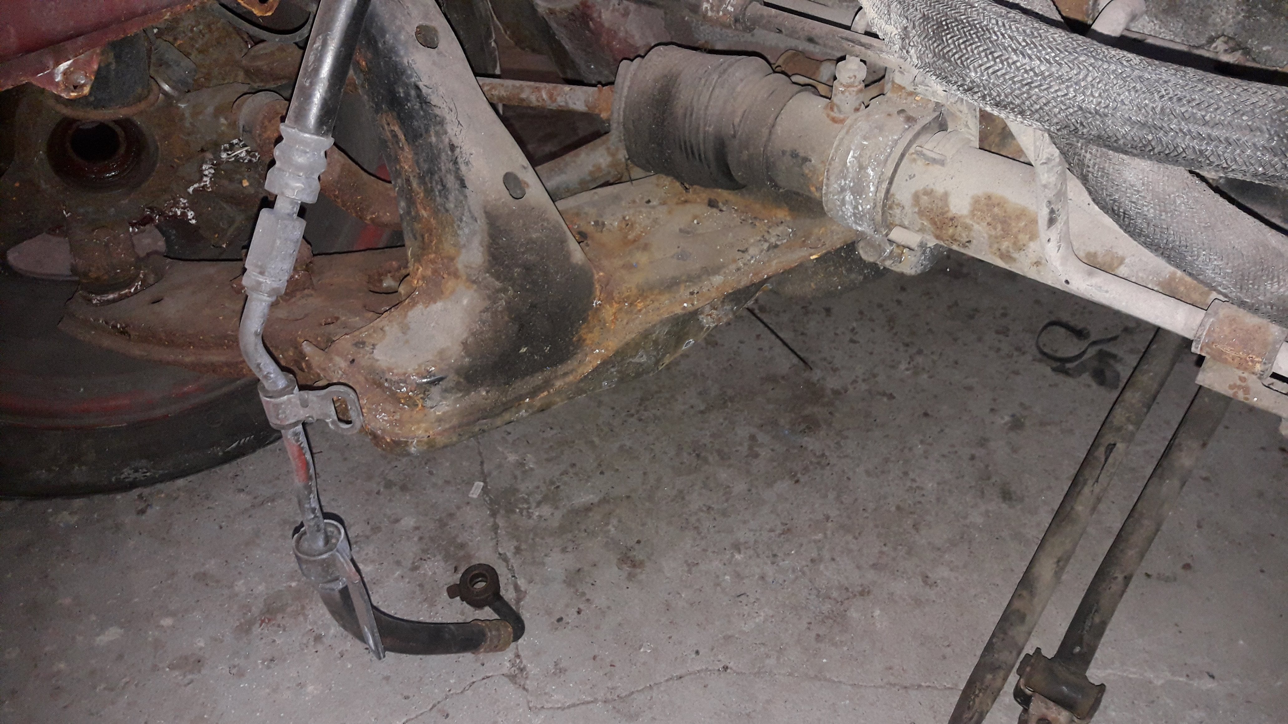 Generalnie zawieszenie nie jest w złym stanie, rdza jest tylko powierzchowna. Wymienione zostaną tylko wahacze przednie i tylne wahacze poprzeczne te zrobione z profili.