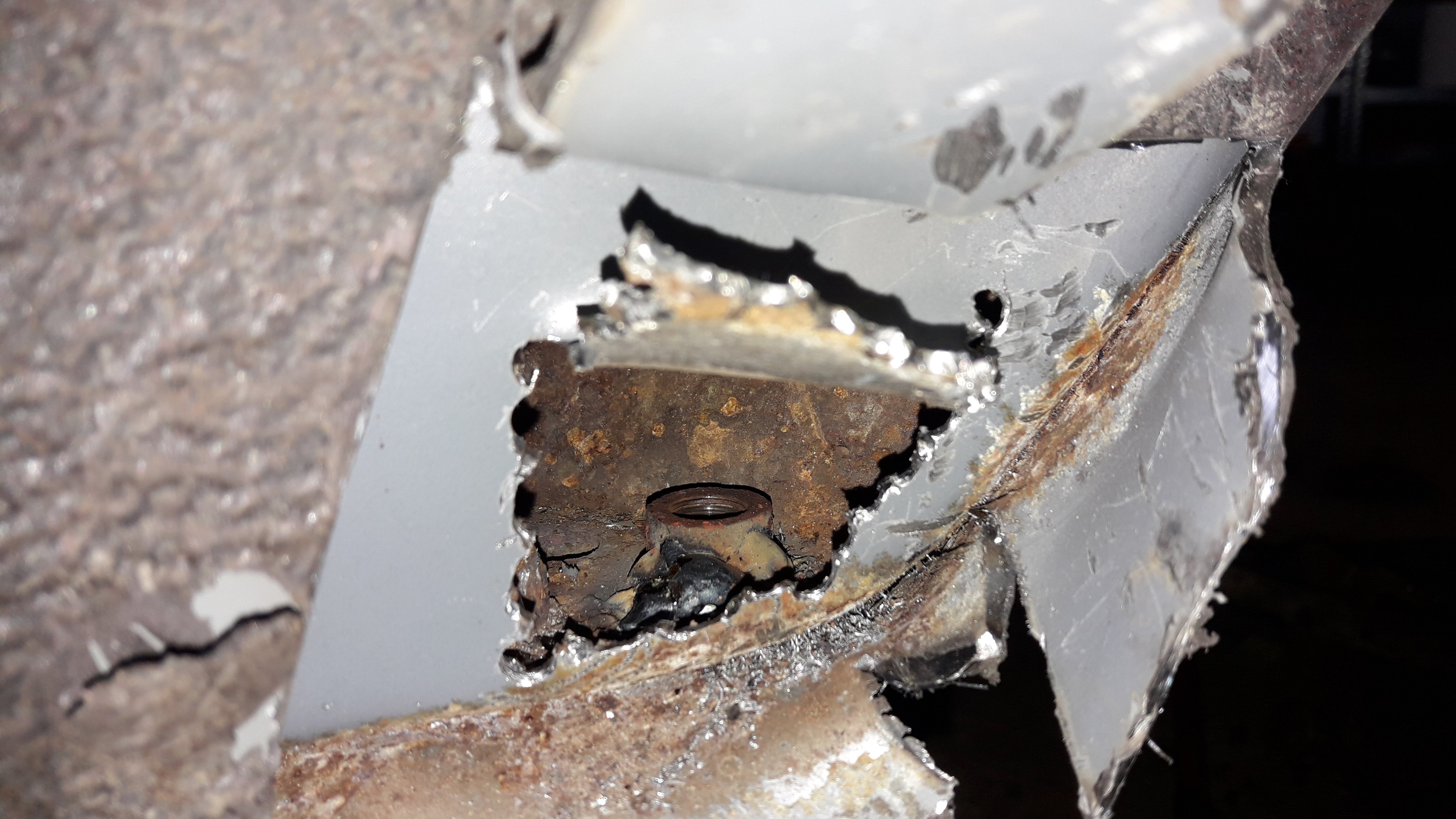 Przy odkręcaniu przedniego wózka oberwała się nakrętka, która jest wspawana pod poszyciem, musieliśmy zrobić okienko żeby się do niej dostać i ją przyspawać